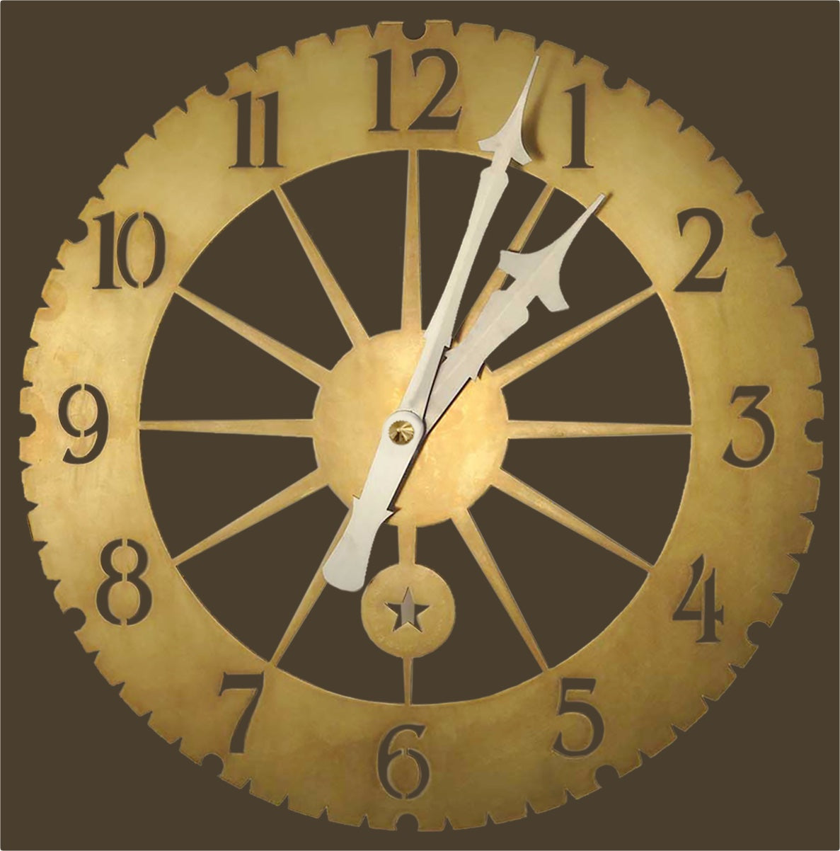 Jeffersonian clock- The Jeffersonian Clock is a practical instrument adds art, sophistication and purpose to any garden. Inspired by Thomas Jefferson's affinity for invention, this unique device features a gear-shaped design and is made from solid brass.
