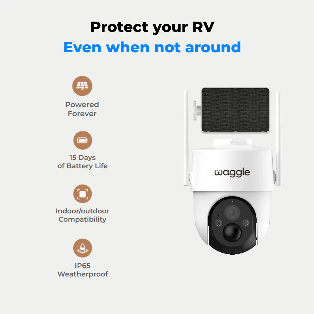 Whether you’re parked lakeside or exploring remote backroads, the Waggle 4G RV Cam Pro stands watch over your home on wheels. Engineered for professional‑grade security, it delivers constant peace of mind—so you can enjoy every journey knowing your RV is protected day and nig