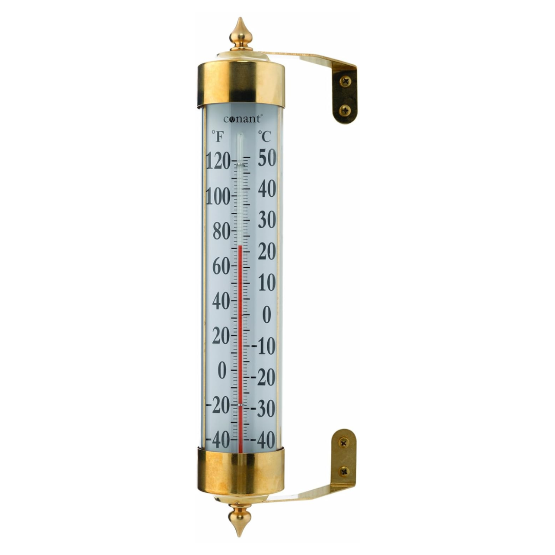 Standing 24" tall, this easy-to-read window thermometer displays temperature in both Fahrenheit and Celsius using half-inch numerals that are double the size of those on most thermometers. The magnifying shape of the glass tube makes the tiny column of red fluid visible.