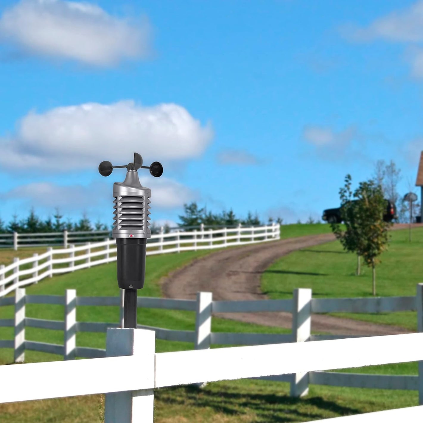 - 3-in-1 sensor transmits temperature, humidity, and wind speed.