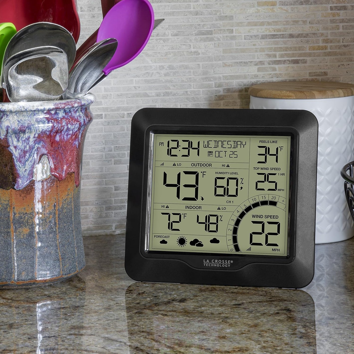 Adjustable settings for HIGH & LOW alerts for temperature, humidity, and wind speed
